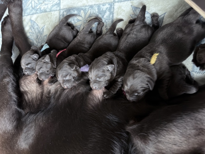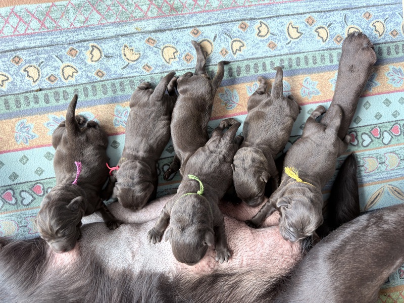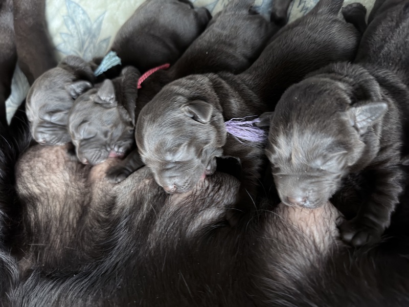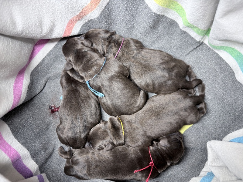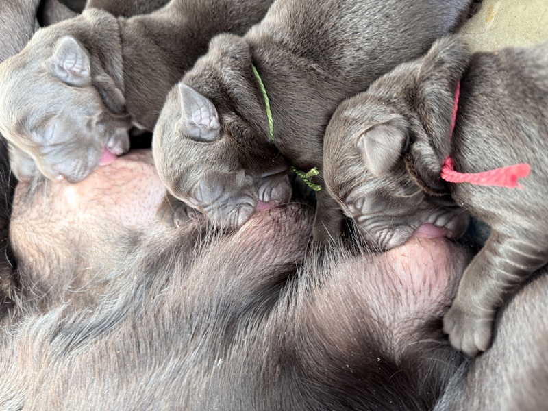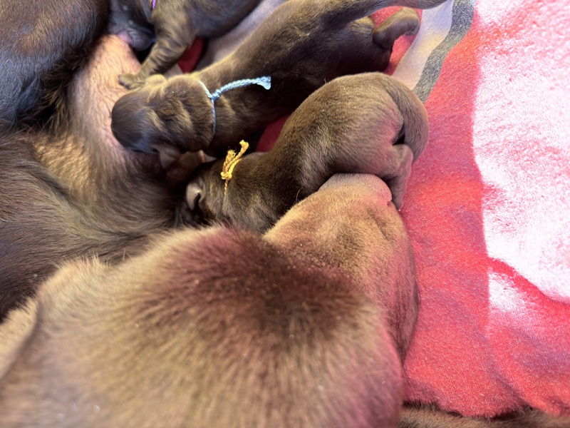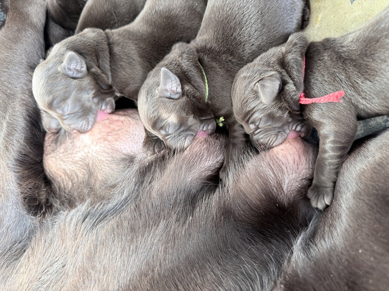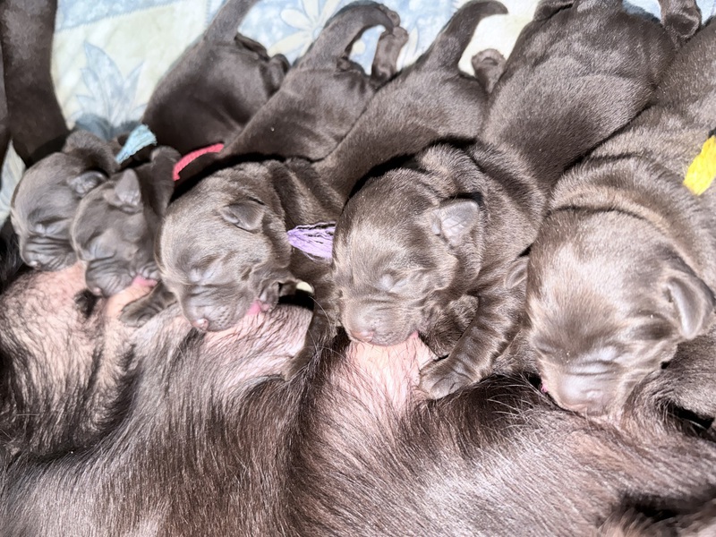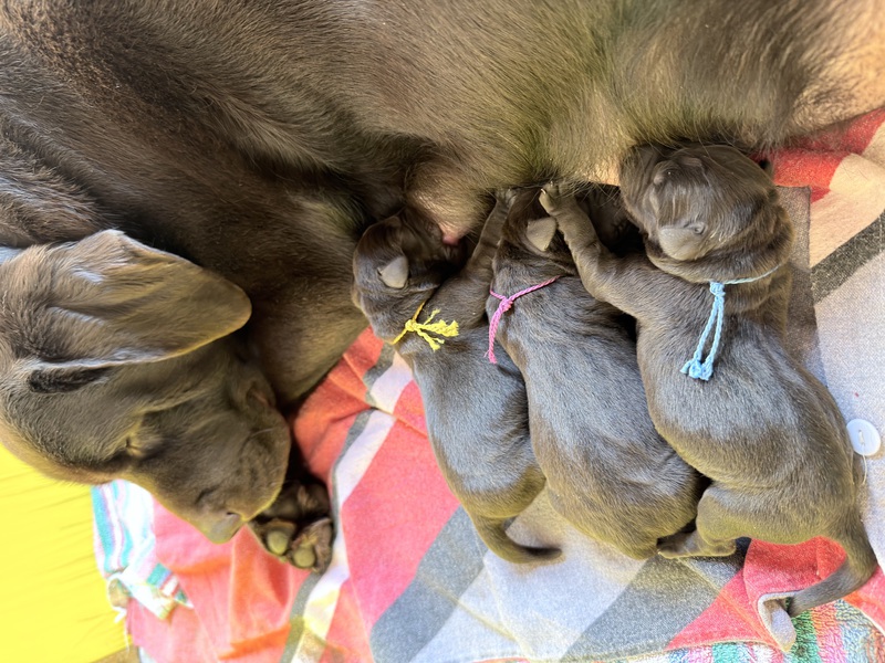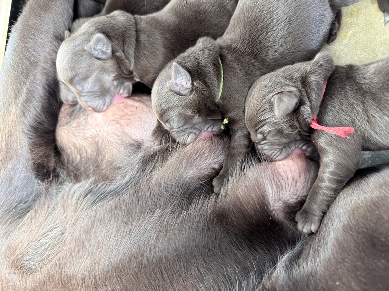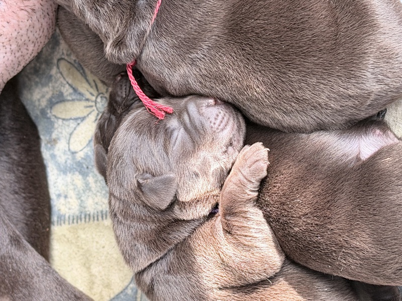 Unsere Welpen sind gestern gesund und munter auf die Welt gekommen! Mama und den Kleinen geht es sehr gut. Jetzt heißt es vor allem: trinken, schlafen und wachsen. Das Wichtigste in den ersten Tagen ist eine gute Gewichtszunahme – und das klappt momentan ganz wunderbar.