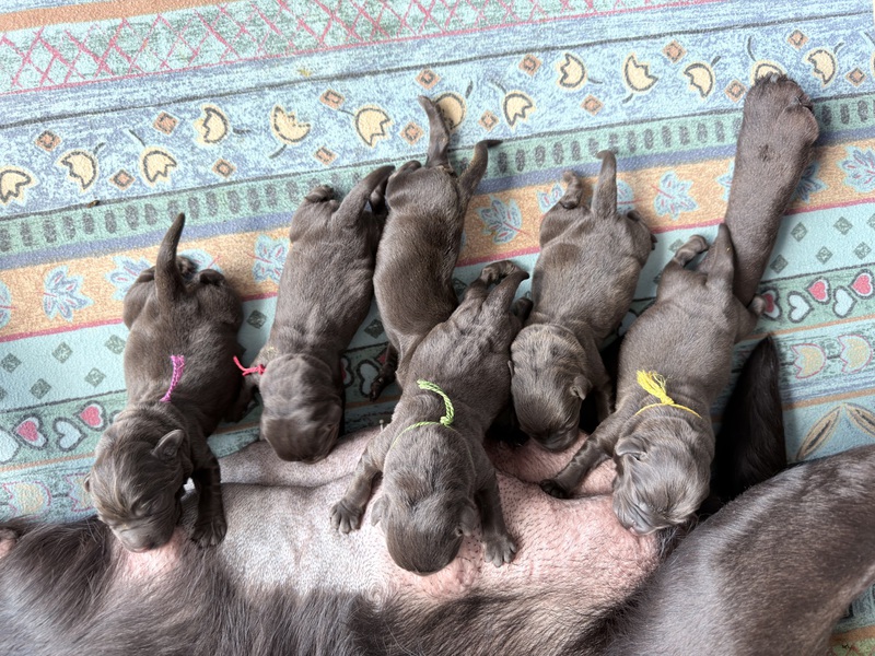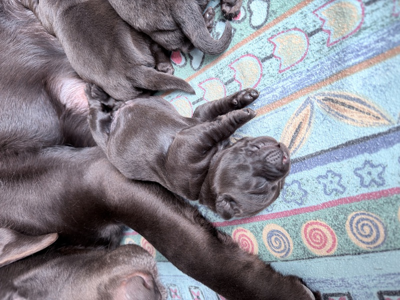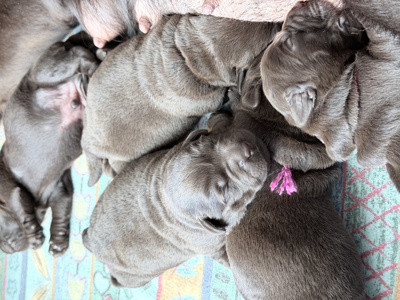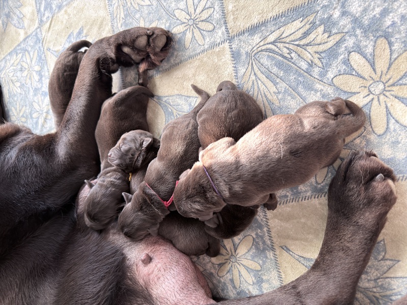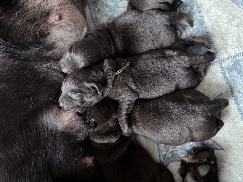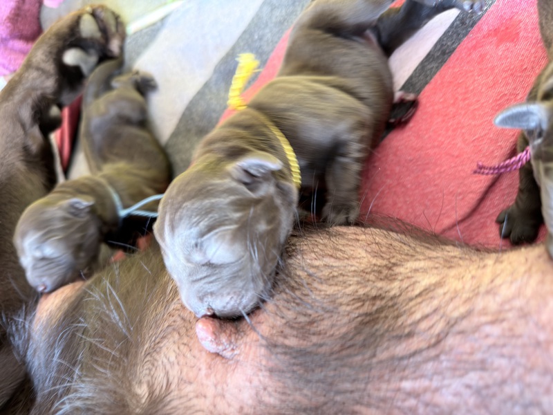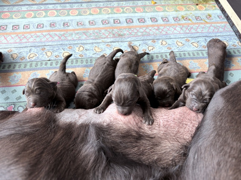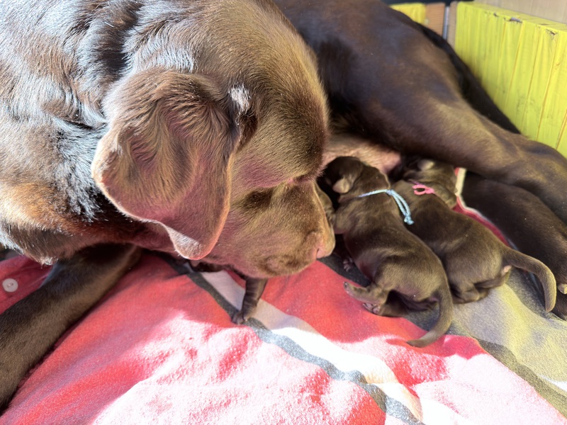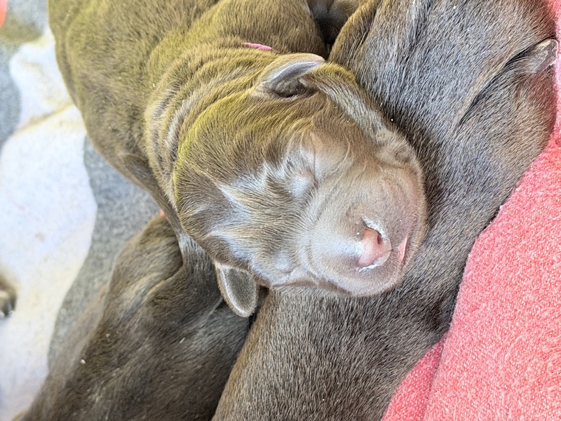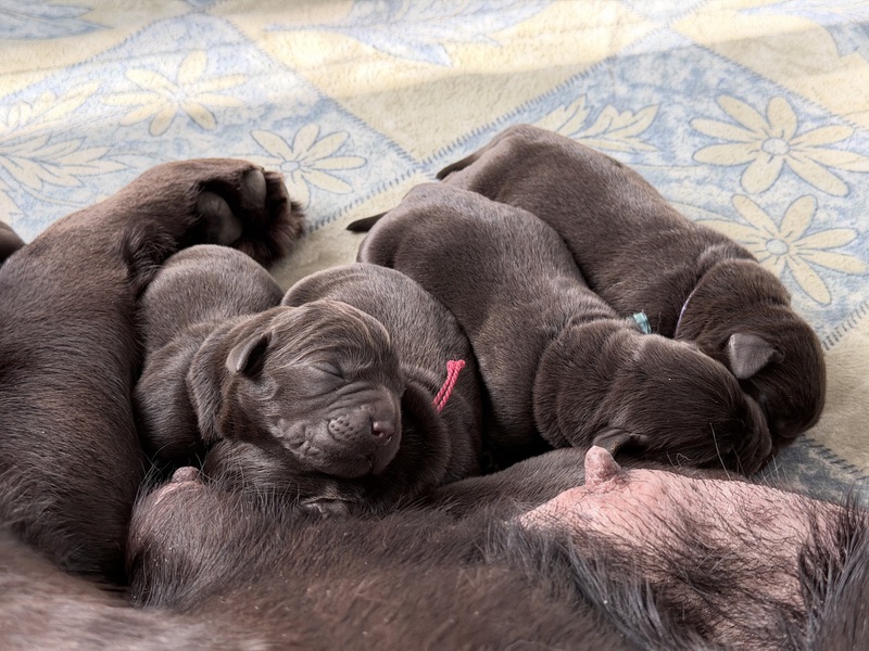 Unsere Welpen sind gestern gesund und munter auf die Welt gekommen! Mama und den Kleinen geht es sehr gut. Jetzt heißt es vor allem: trinken, schlafen und wachsen. Das Wichtigste in den ersten Tagen ist eine gute Gewichtszunahme – und das klappt momentan ganz wunderbar.