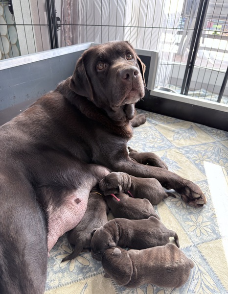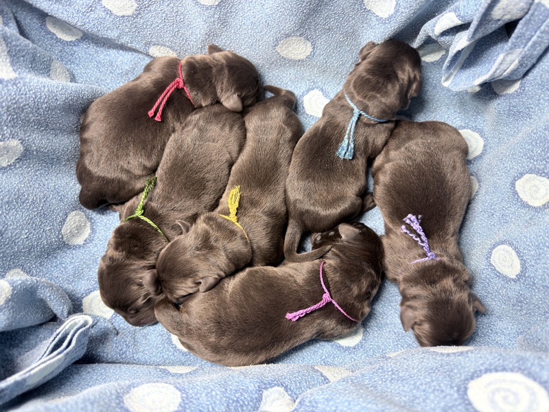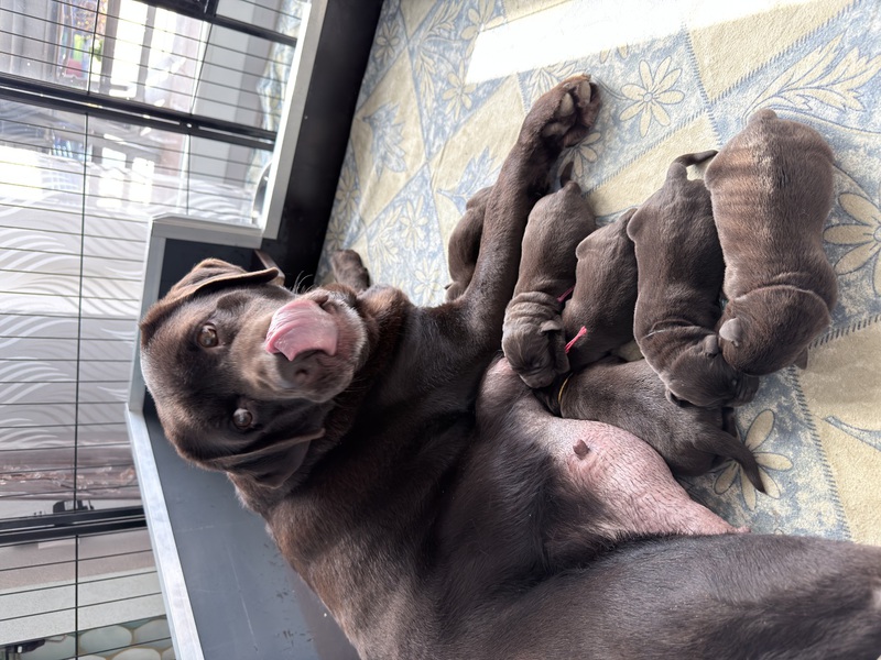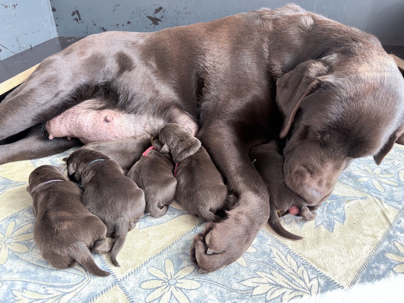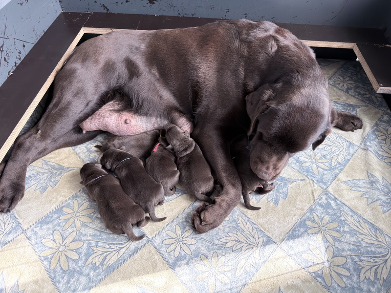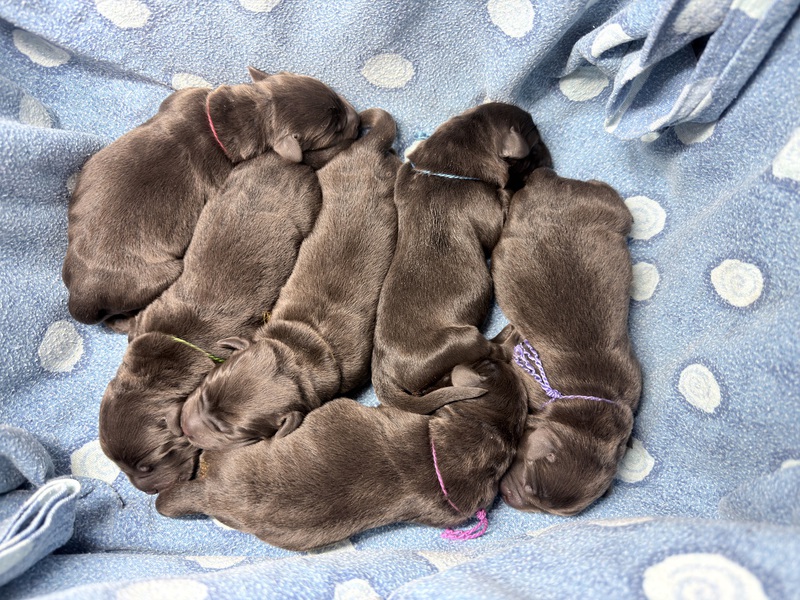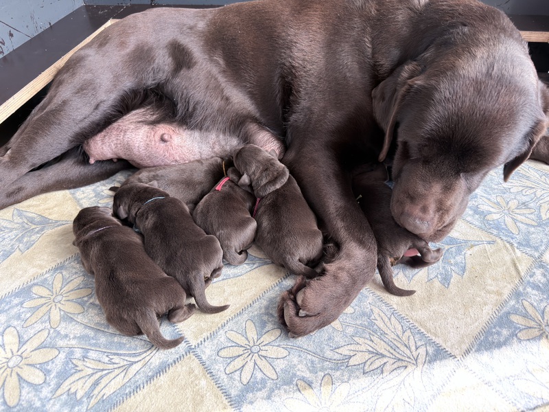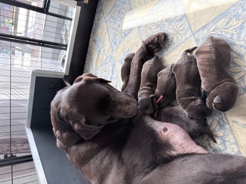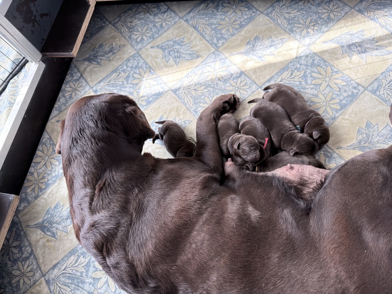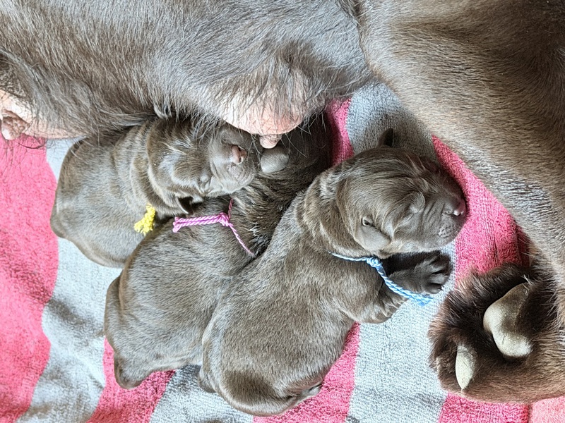 Unsere Welpen sind gestern gesund und munter auf die Welt gekommen! Mama und den Kleinen geht es sehr gut. Jetzt heißt es vor allem: trinken, schlafen und wachsen. Das Wichtigste in den ersten Tagen ist eine gute Gewichtszunahme – und das klappt momentan ganz wunderbar.