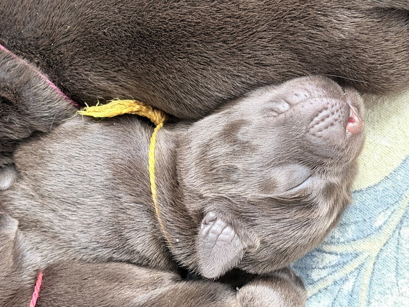 Die Kleinen zeigen sich inzwischen immer neugieriger und entdecken ihre Umwelt mit großer Freude. Sie sind sehr entspannt, offen und zeigen sich in jeder Situation erstaunlich unerschrocken. Neue Geräusche, verschiedene Untergründe und auch unbekannte Situationen werden ganz gelassen angenommen – ganz typisch für kleine Labradore.